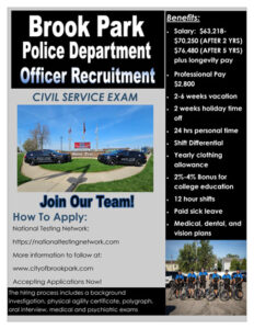 Brook Park, with its residential population of around 19,000 that swells to between 23,000 and 25,000 during the day due to the influx of workers, presents unique challenges and opportunities for the department, which also offers services like car lockouts.
